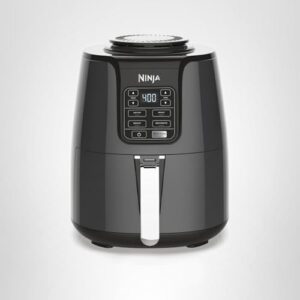 About this item LESS FAT: Now enjoy guilt-free food. Air fry with up to 75% less fat than traditional frying methods. Tested against hand-cut, deep-fried French fries. WIDE TEMPERATURE RANGE: 105°F-400°F allows you to gently remove moisture from foods or quickly cook and crisp foods with convection heat. FAMILY-SIZED CAPACITY: 4-quart ceramic-coated nonstick basket and crisper plate fit 2 lbs of French fries. 4-IN-1 VERSATILITY: Includes 4 versatile cooking programs: Air Fry, Roast, Reheat, and Dehydrate. DEHYDRATE: Create flat, chip-like dehydrated foods for fun, homemade snacks. The combination of low fan speed and low temperature enables thorough dehydration. EASY-TO-CLEAN: Dishwasher safe parts including the basket, and crisper plate. Wipe to clean machine exterior. DURABLE MATERIALS: Basket and crisper plate made of aluminum with nonstick ceramic coating WHAT'S INCLUDED: Ninja Air Fryer, 4 Quart Nonstick Basket, Crisper Plate, and 20 Recipe Booklet.